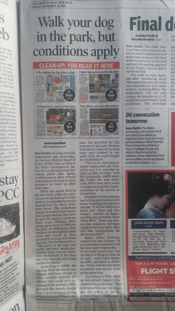 special thanks to AWBI and Prakhar Dixit for making DDA understand that pet dogs need to go to the park as well and parks are not only meant for decoration. There are certain rules one must follow like keeping your dog on a leash and cleaning after your dog to which I agree myself.