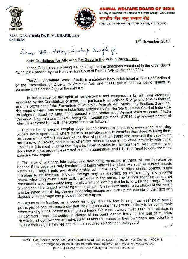 Thanks to DDA vice chairman for understanding the plight of pet owners. Here are the orders passed by DDA .