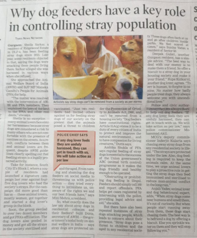 Gurgaon Police reaffirms the fact that dog feeders are protected by law. Post navigation 0 arrests against 19028 animal cruelty cases in MumbaiA school in Betul District beats up dogs mercilessly